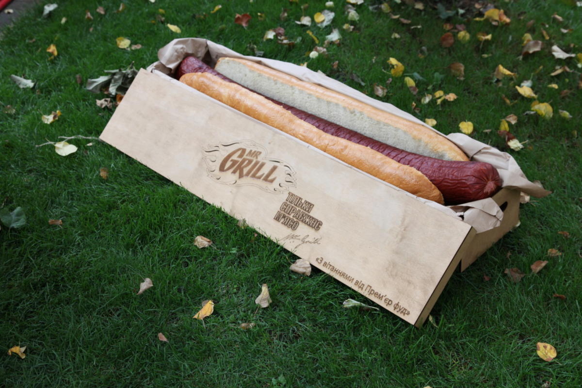 Цікаво, що робили б американці з рекордним хот-догом, який виготовила на фестивалі Oktoberfest Kiev 2015 компанія «Premier Food» – ТМ «Mr.Grill»? Велетенську 117-сантиметрову сосиску у булці відповідного розміру навіть у руках не кожен втримав би, адже важив цей гігант фастфуду 19,5 кг – і це без кетчупу, майонезу та інших начинок, якими вирішили не переобтяжувати рекорд.