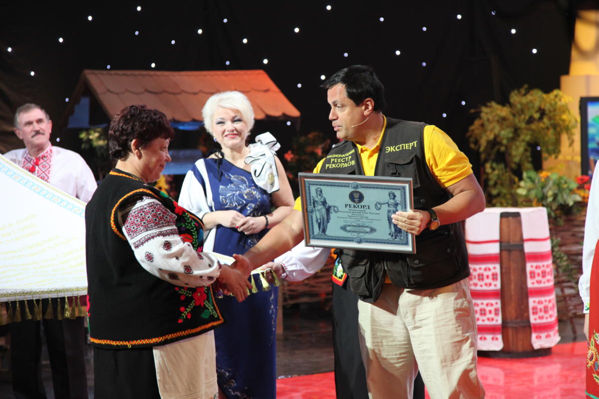 Українська вишиванка, як відомо, колись вважалася не лише одягом, а й оберігом. Варвара Іванівна Гоцуляк з Чорноморська певна, що захисна сила властива вишивці й зараз. Тільки вишивати треба правильно – обов’язково вручну, дотримуючись заздалегідь визначених візерунків. А якщо замість візерунку використати текст Державного Гімну України – це вже буде оберіг для всієї держави. Саме таку вишивку на рекордному полотні розміром 2,5 на 1,5 метра й створили чорноморські майстрині на чолі з Варварою Гоцуляк. Роботу, що тривала півроку, спеціально вели у людних місцях Чорноморська, щоб до неї міг долучитися кожен. Так і вийшло: у вишивці є частка праці понад 80 мешканців міста. Сама ж робота повністю відповідає вимогам вищих сил – жодна з 450 золотих літер, ком чи крапок не має вузликів зі зворотного боку полотна.