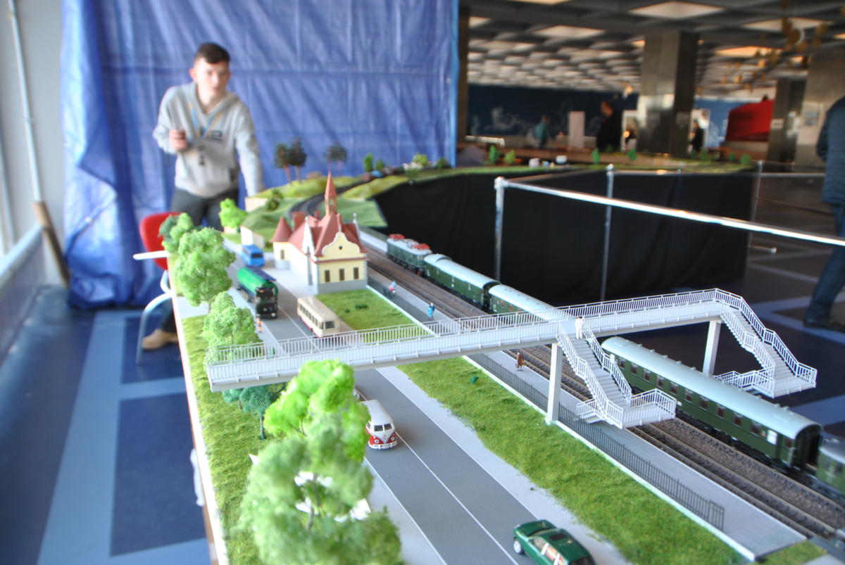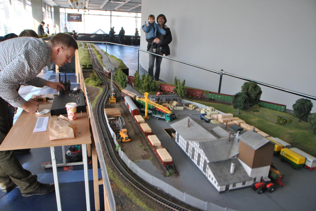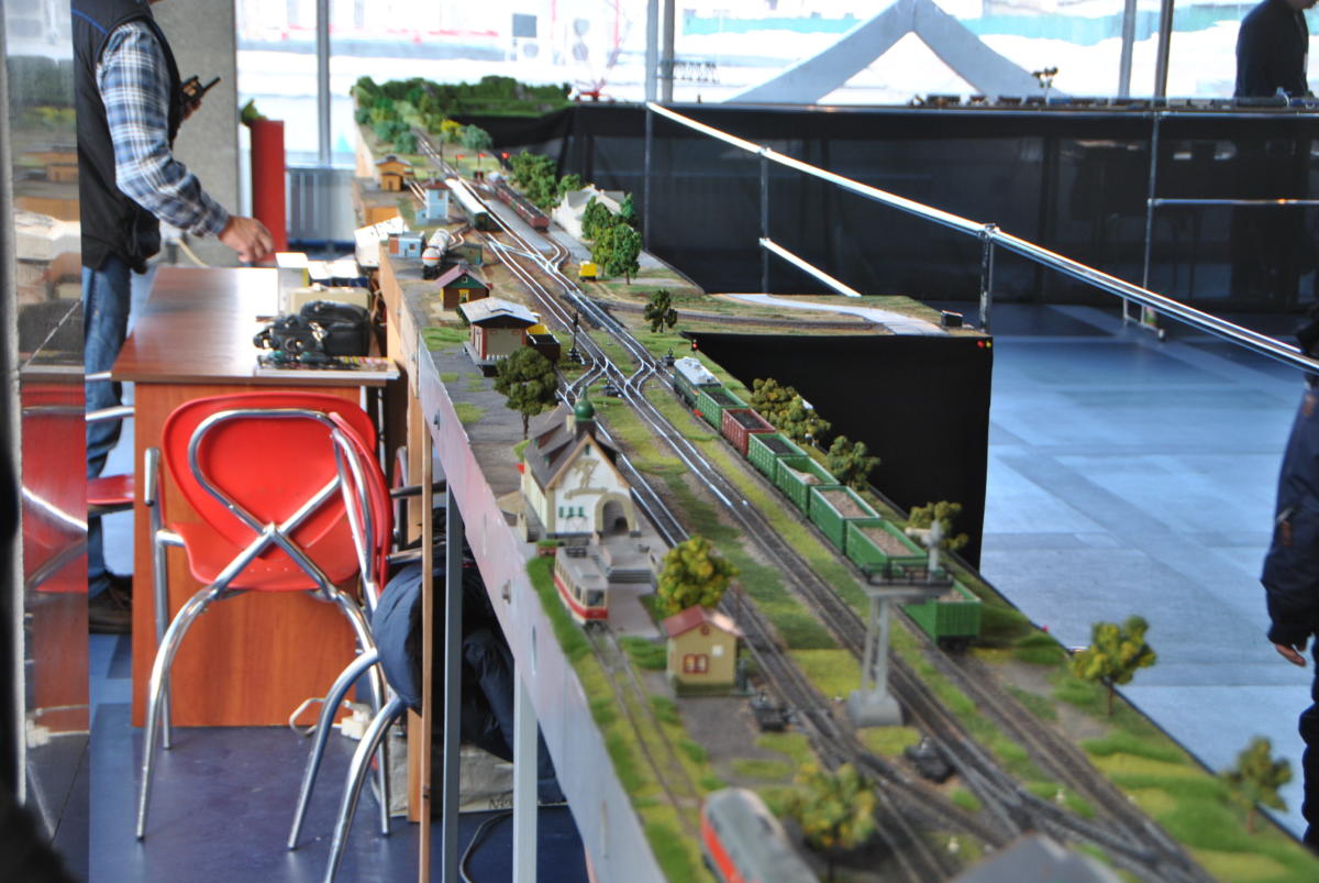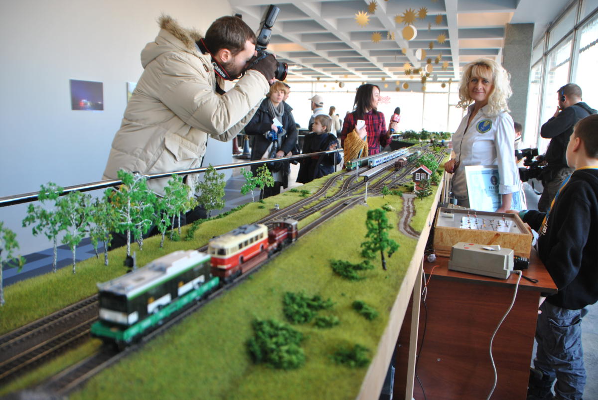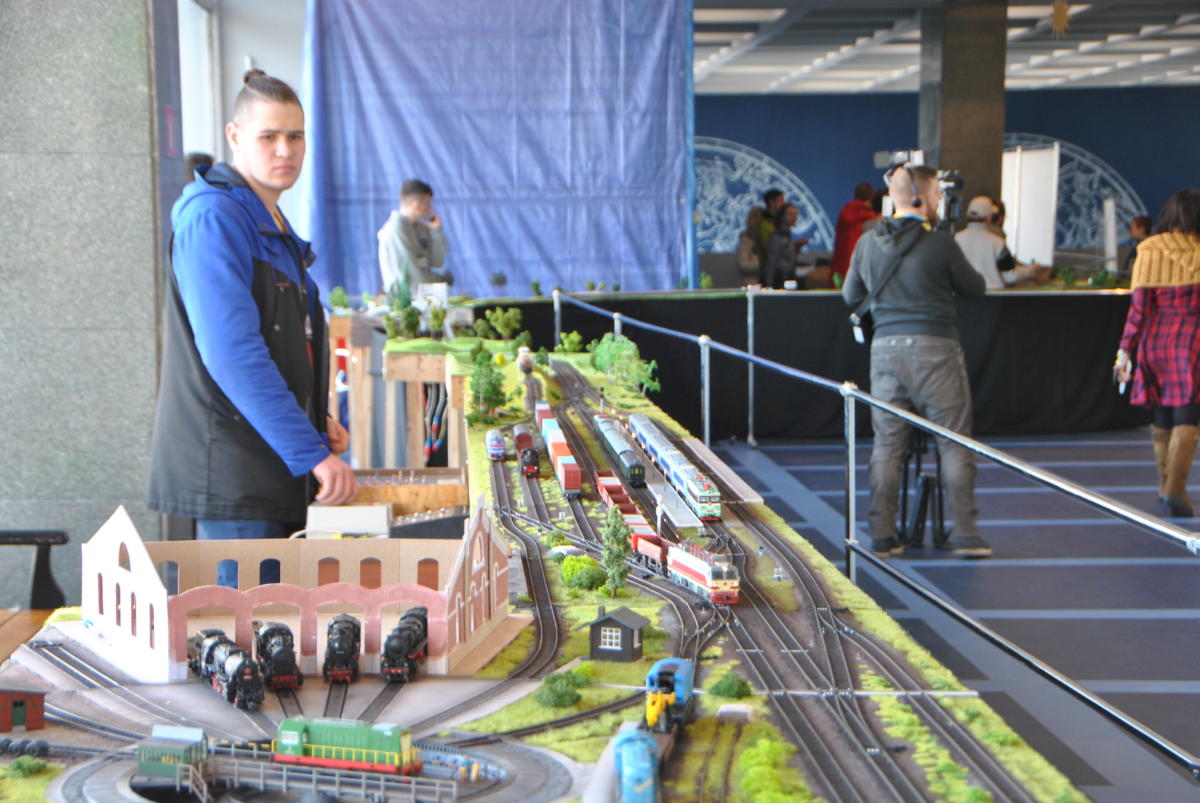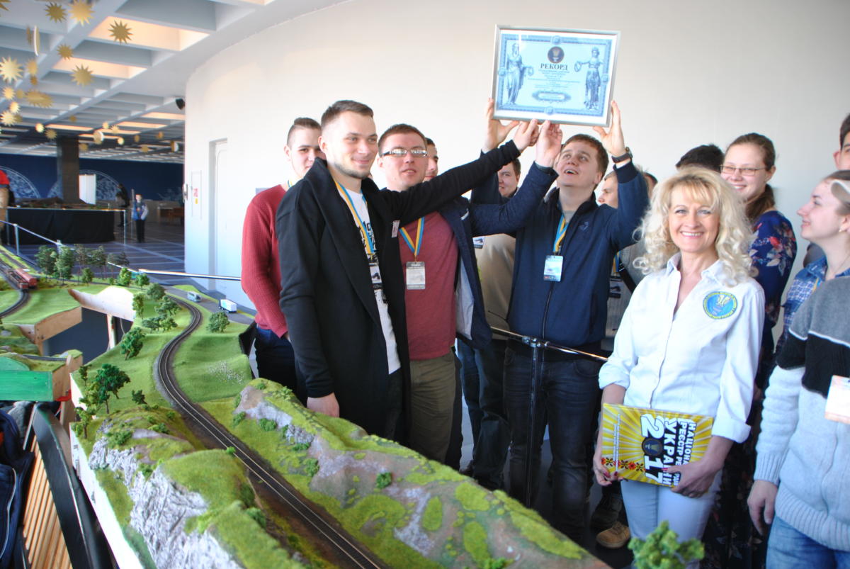 Майстри з «Українського клубу залізничного моделювання» побудували діючий макет залізниці довжиною 81,9 метра. На ньому все, як справжнє, тільки зменшене у 87 разів: вокзали і депо, мости, тунелі та переїзди з автомобілями. І, звичайно ж, поїзди – пасажирські, вантажні та службові. Загалом їх 25, з них 20 рухається одночасно. На макеті 8 станцій і локомотивне депо з поворотним кругом. Працюють світлофори та перемикаються стрілки. Рухом потягів керують диспетчери, які спілкуються між собою за допомогою рацій, а зв’язок між станціями здійснюється через IP-телефонію. Перед тим як вручити сертифікат про рекорд його організаторам – Павлу Чубасі, Олексію Кулику, Стасу Тишкевичу, Павлу Гущину та Володимиру Швайку, експерт НРР пильно вдивлявся, чи, бува, не підклав хто на рейки ще й фігурку Анни Кареніної в масштабі 1:87.