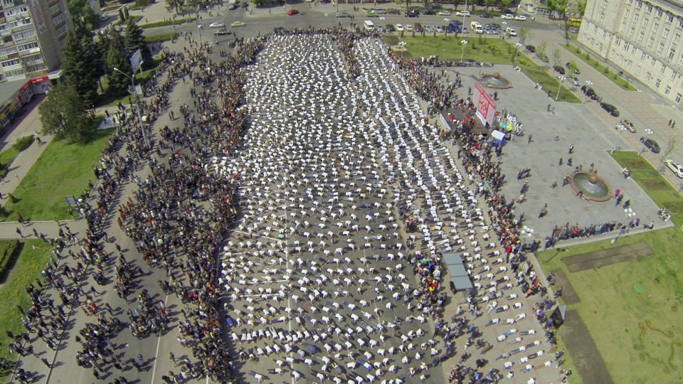 Організатори уважно шикували всіх у шеренги і перераховували. Дуже пильно, адже у попередньому рекорді в Харкові було зафіксовано 715 учасників. Під пісню Володимира Висоцького «Вдох глубокий, руки шире, не спешите – три-четыре!» 916 фізкультурників відтиснулися 20 разів. Могли б і більше, але пісня закінчилася.