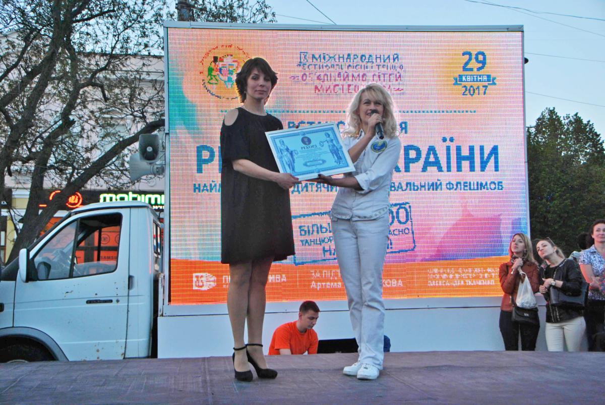Сміливо можна назвати дитячий флеш-моб – флешмобом миру. Він відбувся у Кропивницькому – танцювальній столиці України – і встановив національний рекорд України, «Танцюють всі діти»! Одночасно на головній площі обласного центру 908 дітей стали рекордсменами. Цей рекорд мандрував десятками міст, і скрізь діти випромінювали позитивну енергетику та прагнення до миру. Дитячий флеш-моб миру відбувся в рамках ІХ Міжнародного фестивалю пісні і танцю «Об’єднаймо дітей мистецтвом». Засновник та організатор – Олександра Ткаченко.
