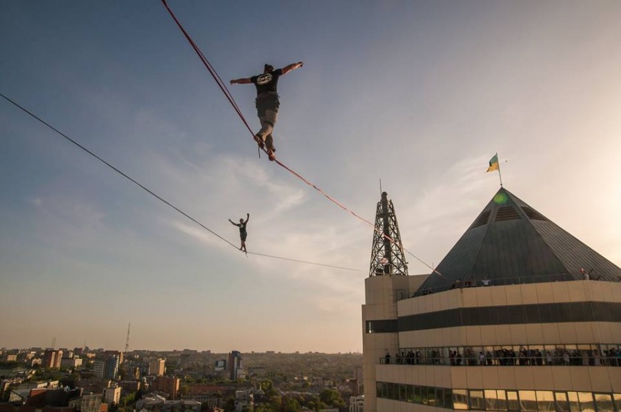Між дахами висотних будинків відомий хайлайнер Станіслав Панюта ходить регулярно. Рекорд з хайлайну він встановив разом із Костянтином Карнозою у рідному Дніпрі, пройшовши по стропі (довжина 35 метрів), натягнутій між двома 26-поверховими будинками на висоті 88 метрів.