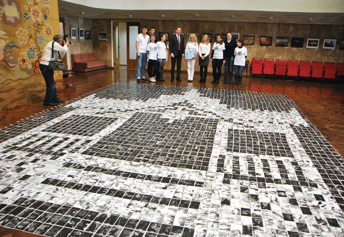 Среди фотографий, тщательно подобранных по оттенкам, есть и пазл с селфипортретом мэра города Александра Лысенко.