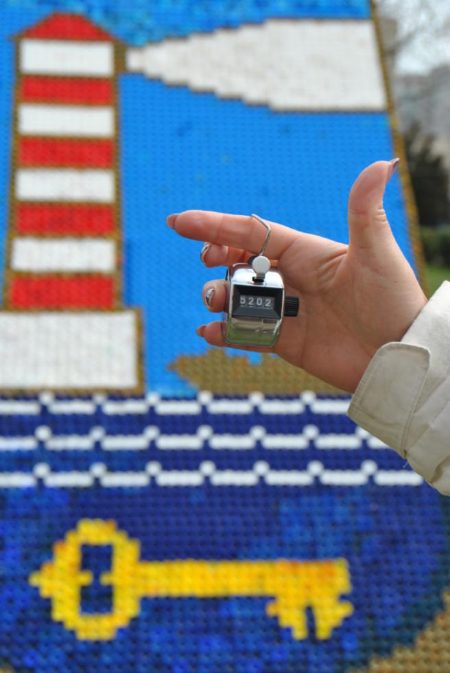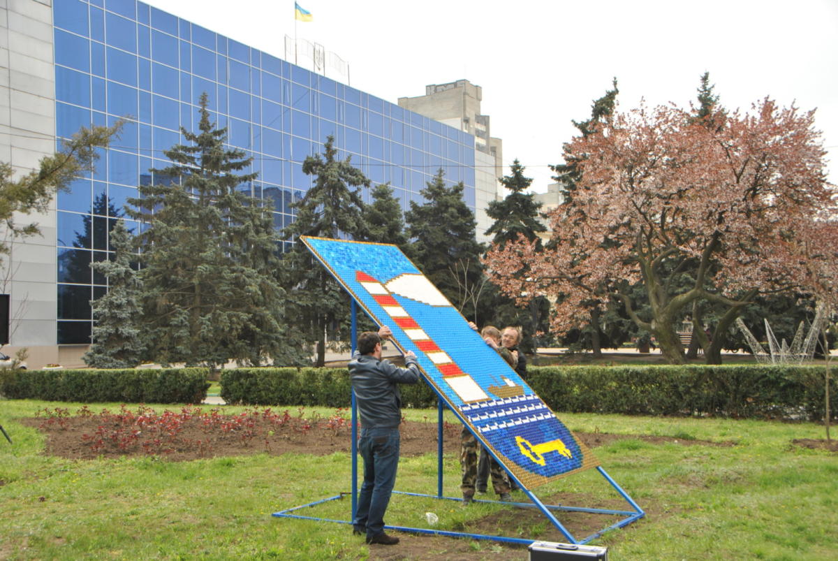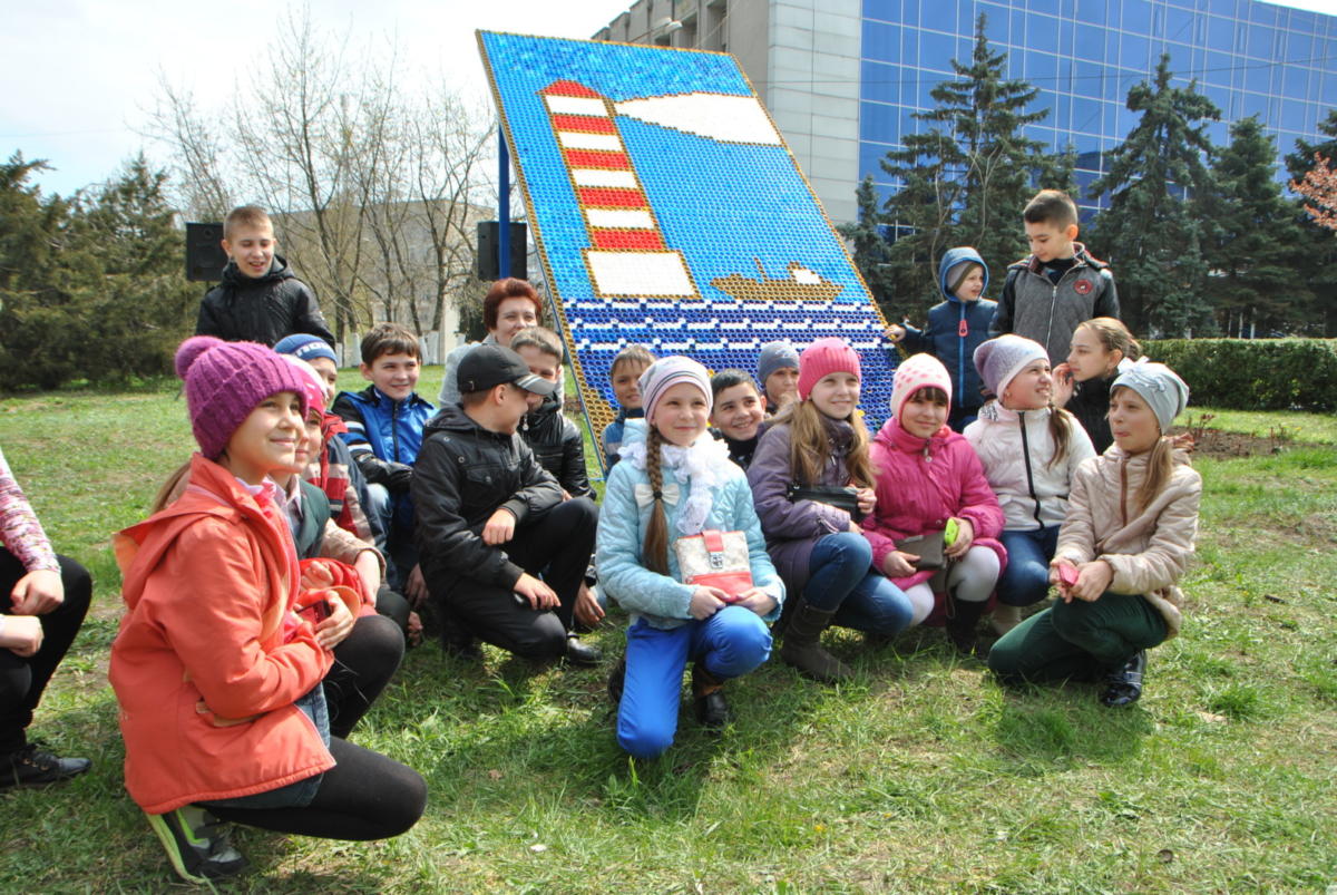 Ко Дню города дети выложили герб родного Ильичёвска из 5202 разноцветных крышек от пластиковых бутылок. Если бы это количество равномерно разбросать по центру города, то на каждом квадратном километре валялось бы по 200 крышечек!