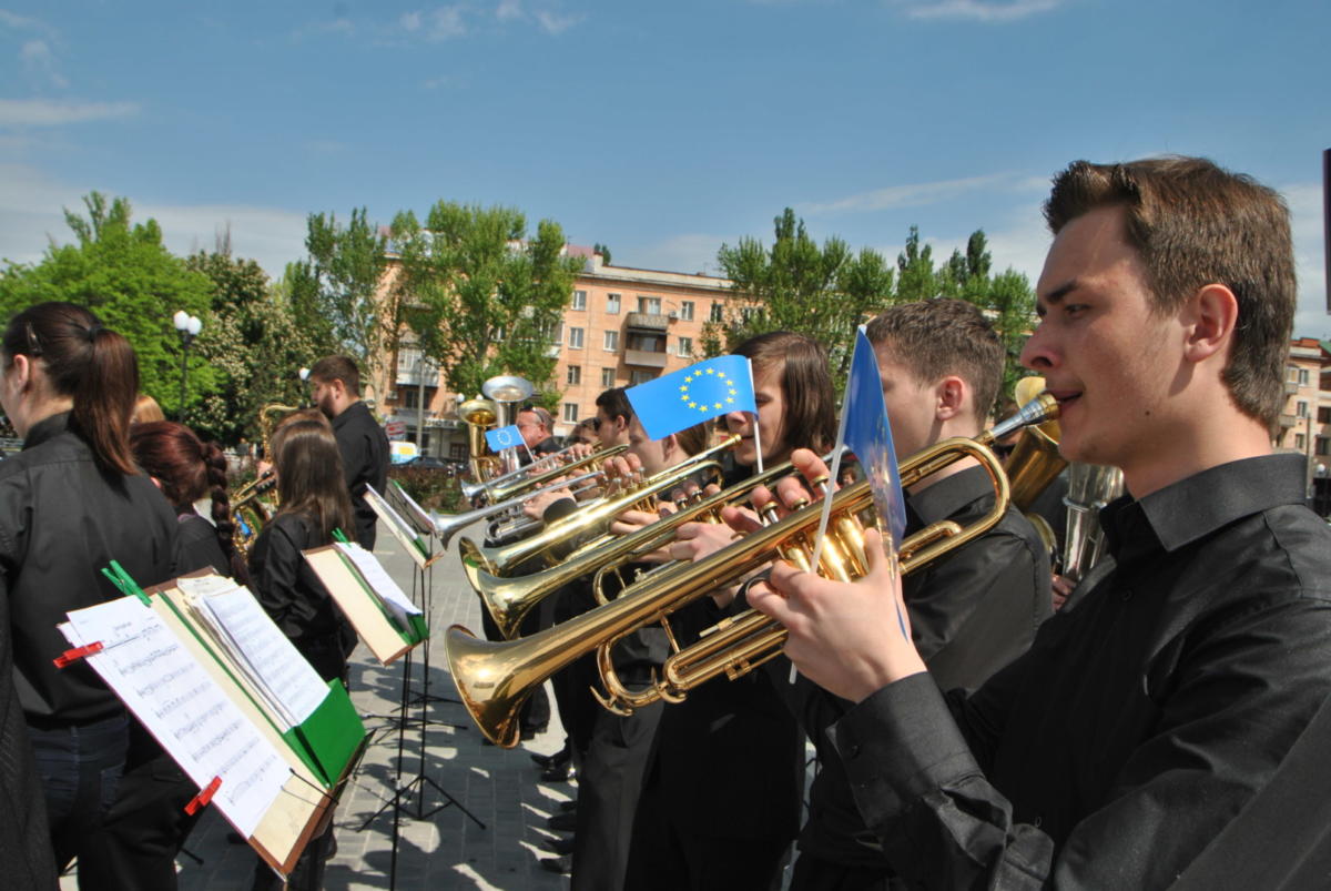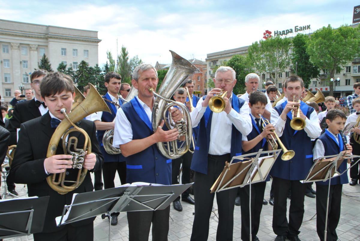 Однако конкурировать они не собирались, а наоборот, слившись на несколько минут в единый коллектив, выполнили по случаю Дня Европы гимны Украины и Евросоюза. Именно Гимн Украины, исполненный одновременно на 211 духовых инструментах, положил начало новой номинации рекордов.