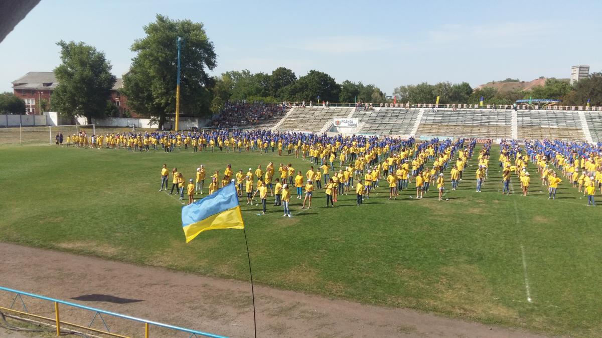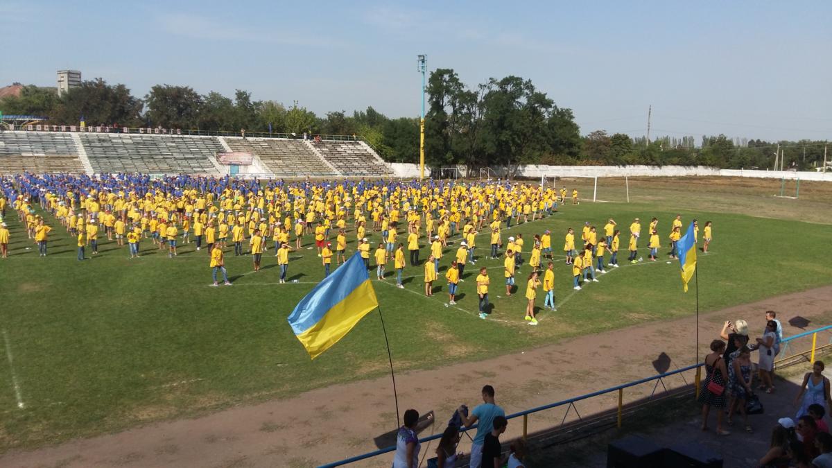 Рисовать и «оживлять» карту Украины в ее главный национальный праздник — очень красивая патриотическая традиция. В честь 25-летия Независимости в Мирнограде (бывшее местечко Димитров) Донецкой области (городской голова — Александр Брыкалов), на стадионе «Шахтер» 1475 детей в возрасте от 12 до 17 лет, одетых в синие и желтые футболки, выстроились в виде карты Украины. На этот раз количество ее живых «элементов» стала рекордной.