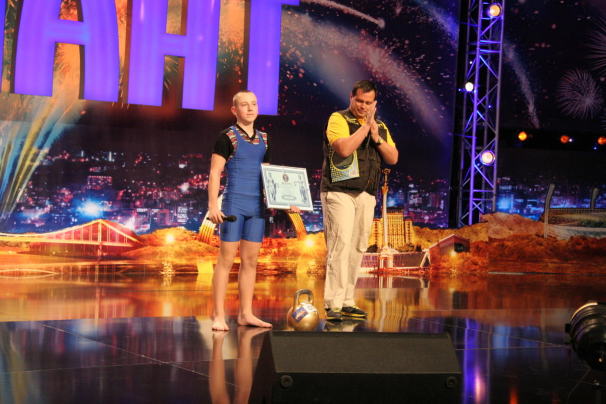 Поднимал бы и дальше, но контрольное время закончилось. Под дружные овации публики Егор, помахивая гирей, как игрушечной, вышел на сцену телешоу «Украина имеет талант» и заслуженно получил сертификат о своем уже втором силовом рекорде.