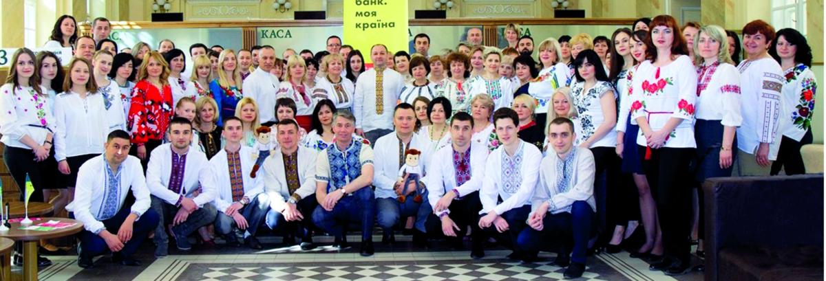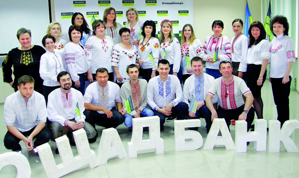 Традиционная украинская рубашка, украшенная орнаментированной вышивкой, во Всемирный день вышиванки стала дресс-кодом для сотрудников государственного Ощадбанка — от кассиров до членов правления.