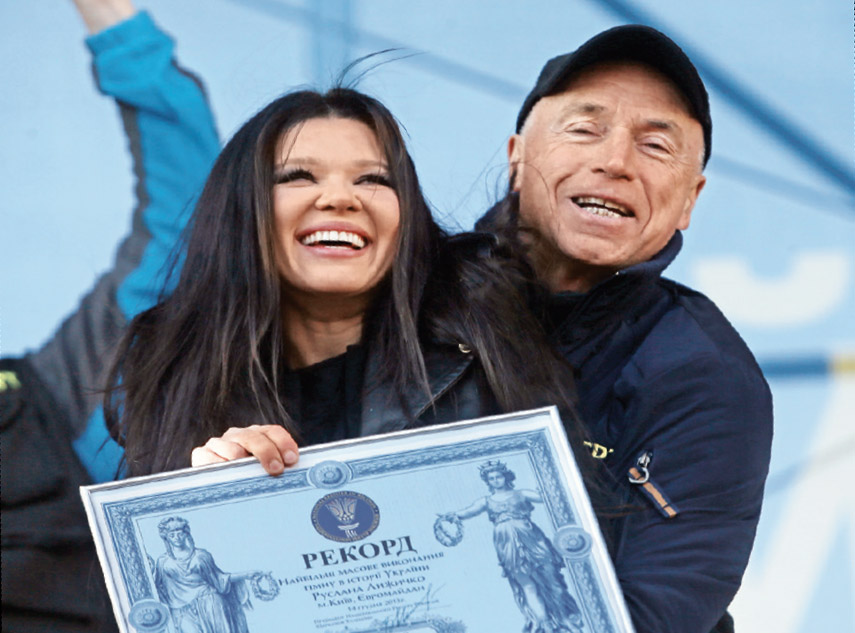 Поэтому обладателем рекорда справедливо был провозглашен Народ Украины. Еще один сертификат эксперты Национального Реестра Рекордов, с одобрения майдановцев, вручили главной движущей силе рекордного пения — Руслане Лыжичко.