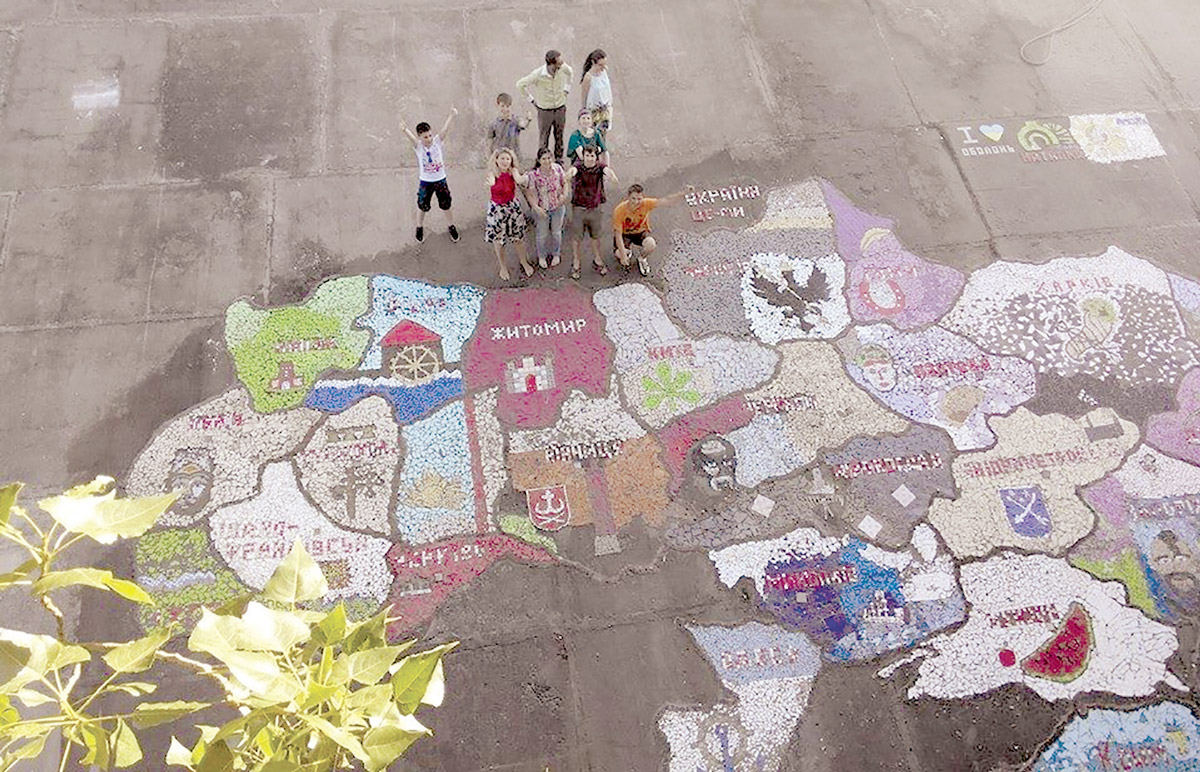 Освежить киевлянам геральдические и географические знания родного края решили сотрудники киевского парка «Наталка» (руководитель Наталья Манюк). Почти полтысячи человек присоединились к составлению из мозаики крупнейшей карты Украины площадью 60,4 кв.м.