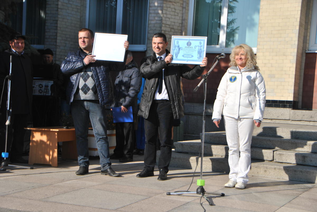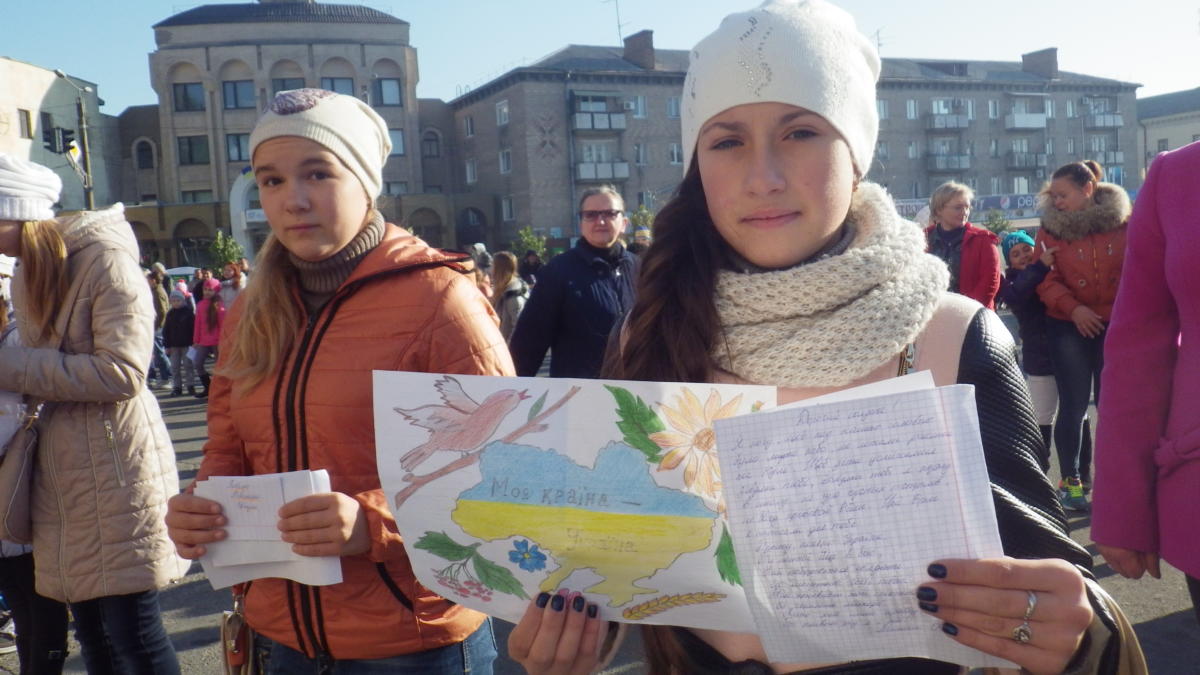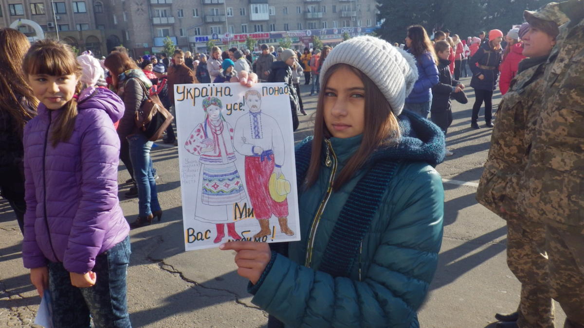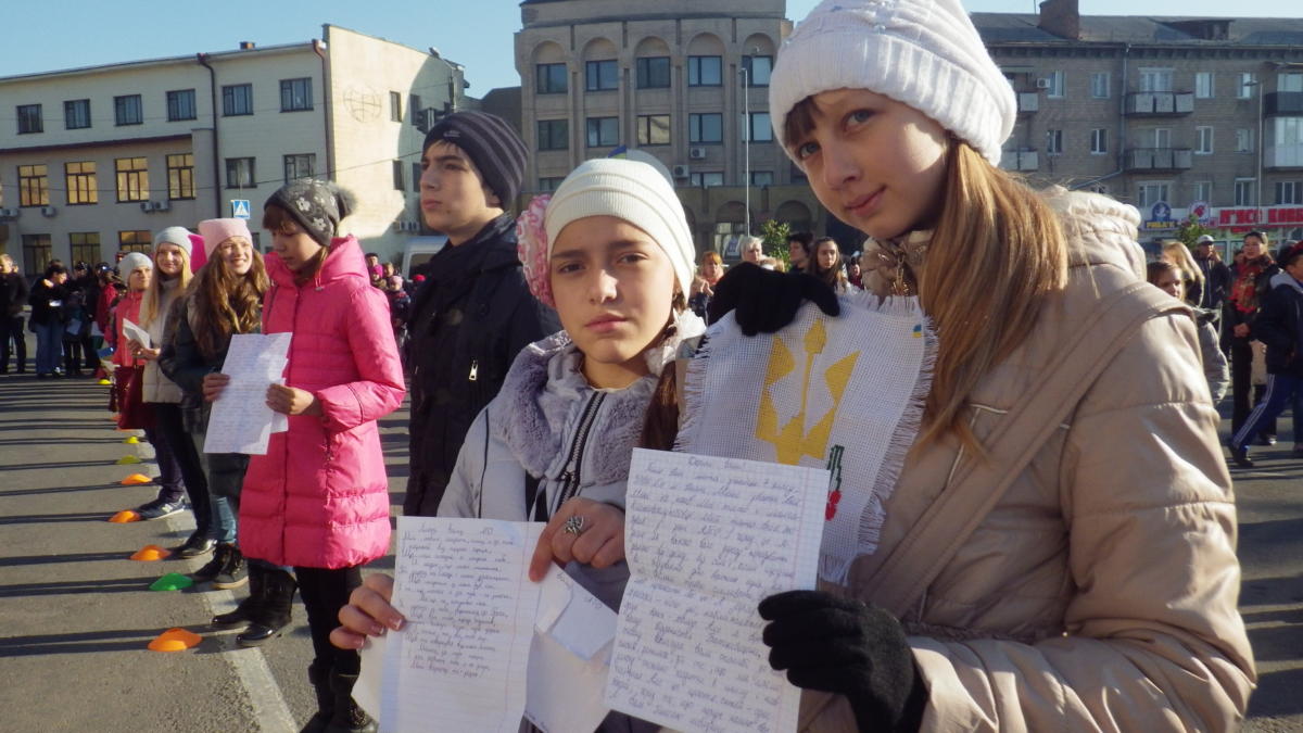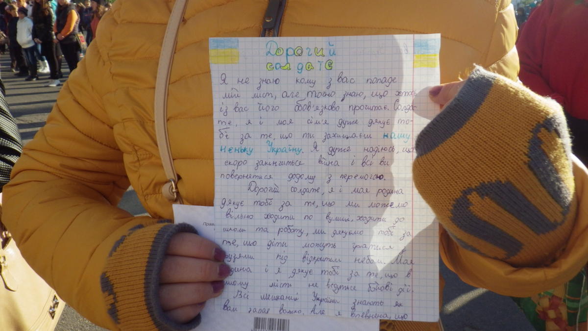 На центральной площади города уманские школьники одновременно написали 399 писем воинам АТО со словами поддержки и благодарности защитникам, установив еще один рекорд Украины.