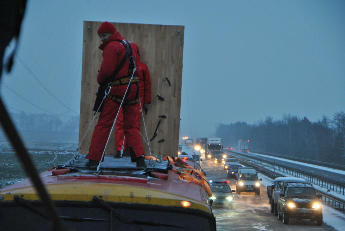 Метанием ножей Сергей Шадрин профессионально занимается с 2000 года. Съемки этого экстремального трюка эксклюзивно осуществлял канал СТБ. Оба — метатель и ассистентка стояли на расстоянии 4 метра друг от друга на крыше автобуса (высотой 4,1 метра), который двигался со скоростью 30-40 км / ч. Вес одного ножа — 410 граммов, длина — 34 см.