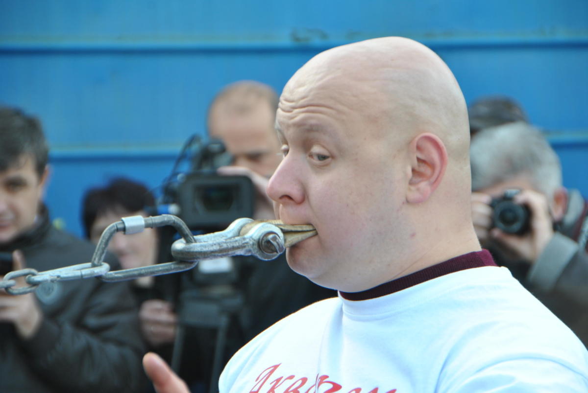С такими сверхпрочными зубами, как у львовянина Олега «Тягнызуба» Скавыша, где-то в других странах он был бы лицом рекламных кампаний зубных паст и щеток. В Украине же он скромный педиатр, который имеет необычное хобби — тянуть сверхтяжёлую технику … зубами!