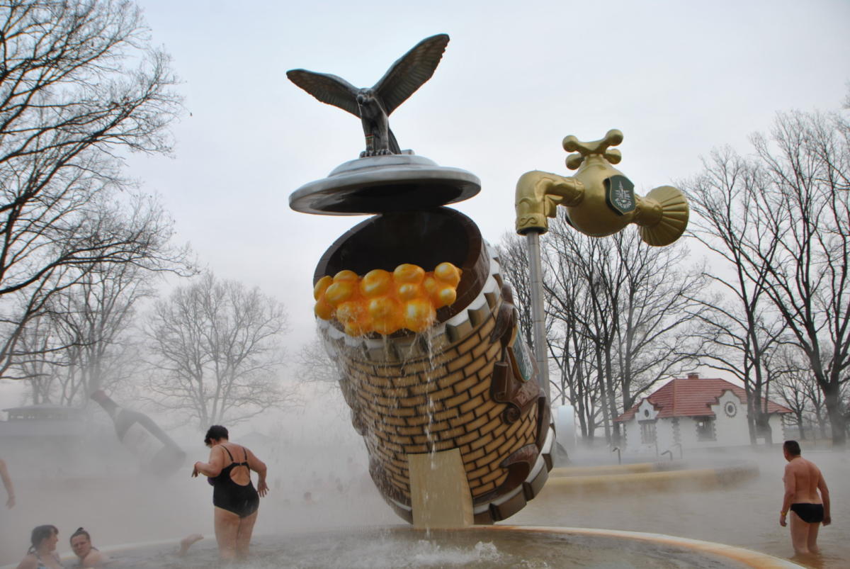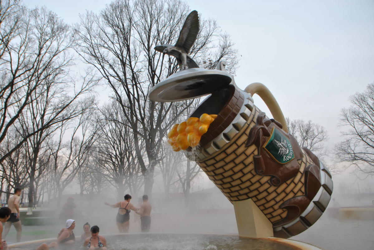 Пиво без водки — деньги на ветер, или в самый большой джакузи-фонтан из пива! Именно такой рекордсмен поселился в селе Косонь Береговского района Закарпатской области. Теперь мужчины могут, не обманывая женщин, исчезать на весь день: «Дорогая, мы с кумом только на одну кружку пива!». Другое дело, что кружка тоже рекордсмен — 5,62 метра высотой, а диаметр бассейна, куда выливается «золотая» жидкость — 6,67 метра.