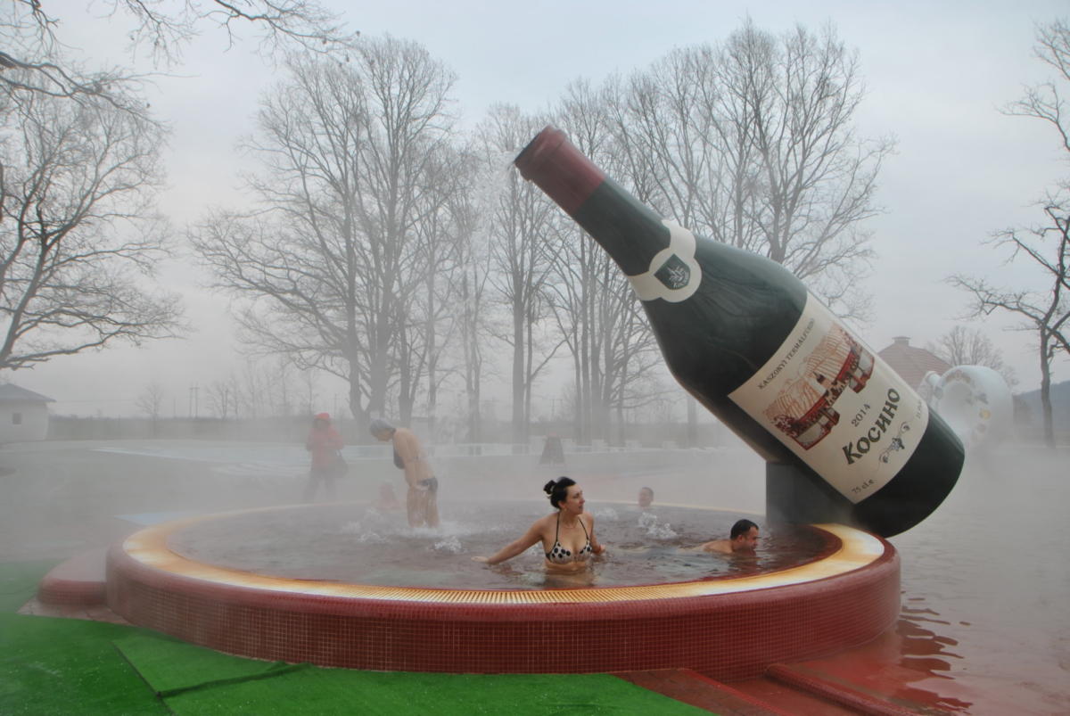 Не удивляйтесь, это не картина художника-абстракциониста, а настоящий самый термальный фонтан-джакузи из вина, диаметр которого составляет 6,67 метров! Именно здесь люди могут расслабиться и поискать истину, оставаясь трезвыми и молодея на глазах.