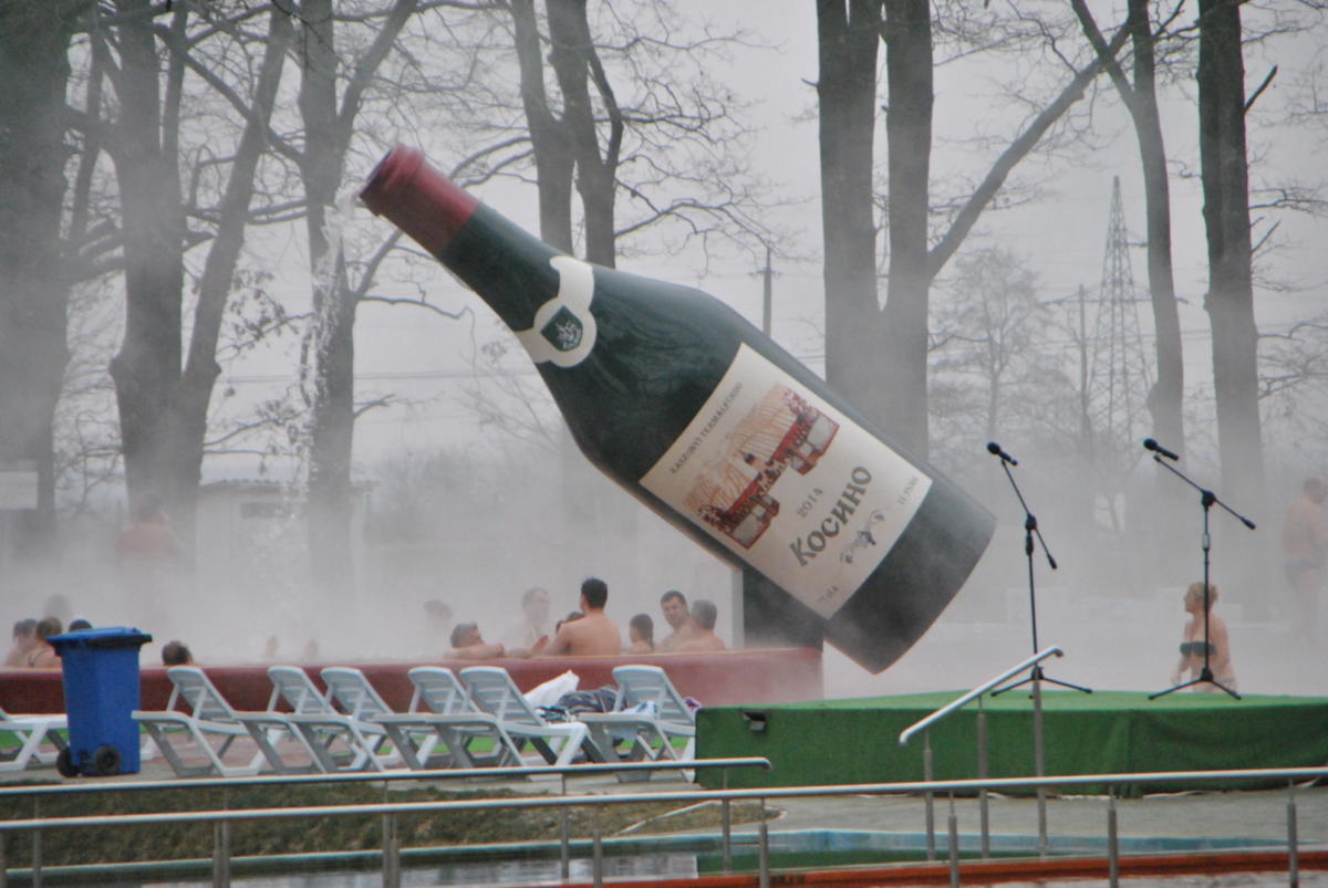 Вот, например, в селе Косонь Закарпатской области разместилась огромная бутылка — 5,3 метра высотой. Но откупорили ее не с целью выпить, а расслабиться в ней: из бутылки вино льется не у огромные бокалы, а прямо на людей.