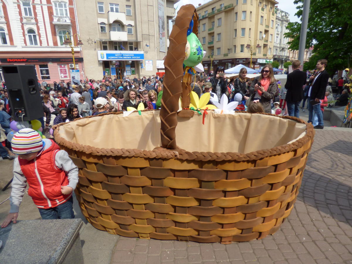 Чтобы освятить пасхальную корзину, которую приготовила мэрия Ивано-Франковска, святым отцам пришлось подниматься на цыпочки. Ведь высота корзины с ручкой достигала рекордных 2 метров 20 сантиметров. А общие размеры корзины составляли 2,4 м в длину, 1 м в ширину и 1,2 м в высоту. Не иначе её изготавливали для Гулливера.