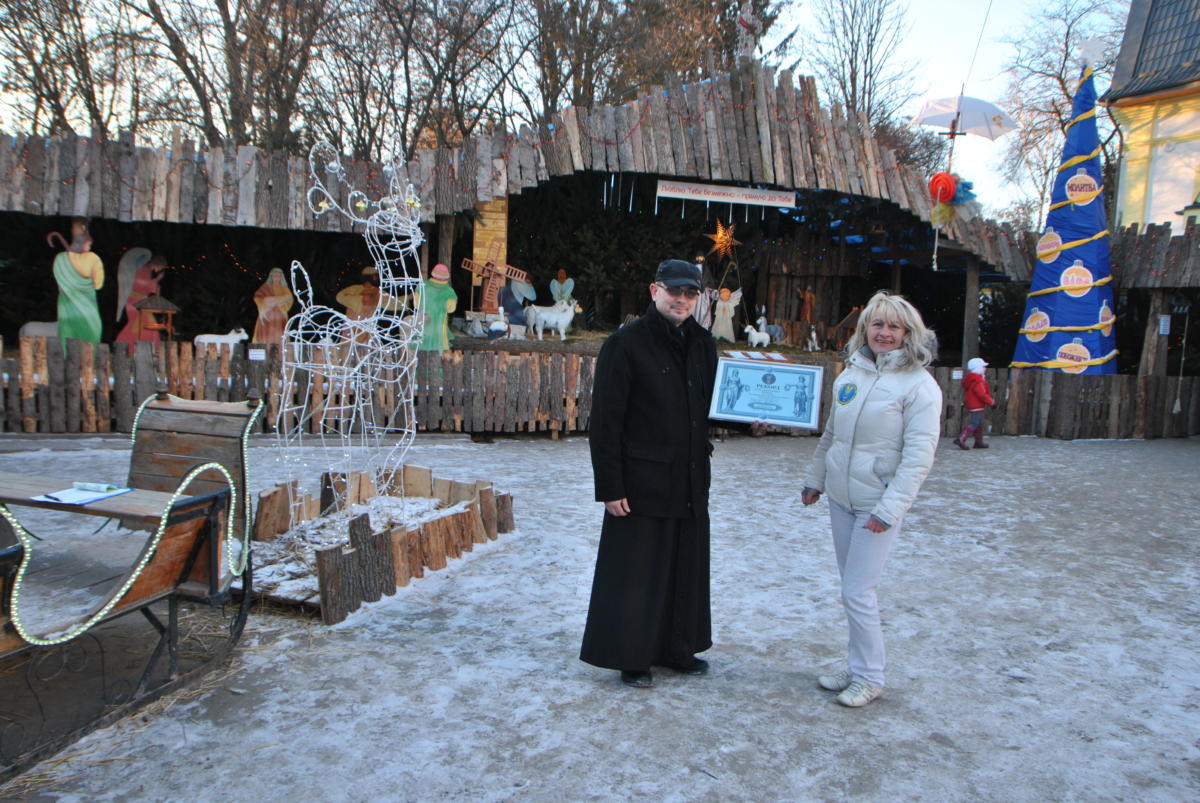 Целый поселок с домиками, фигурами святых и животных появился перед глазами многочисленных прихожан во дворе церкви. Чтобы осмотреть все 88 экспонатов и пообщаться с 15 живыми животными, временно приехавшим пожить в сказочном вертепе, зрителям приходилось обойти немалую площадь — 682 м2, ведь периметр вертепа составил рекордные 106 метров.