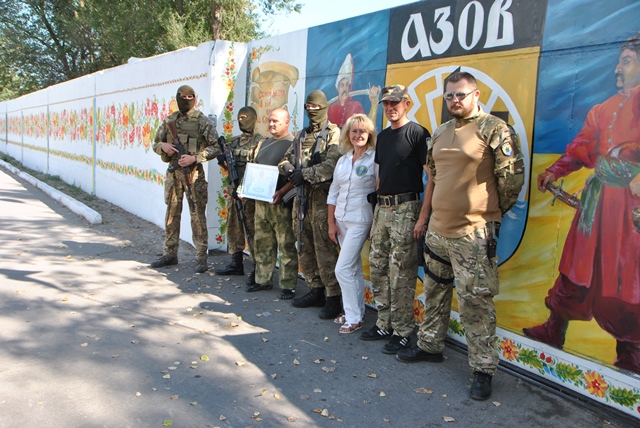 Слова воинов редко расходятся с делами: вскоре невзрачное бетонное ограждение вокруг места дислокации превратилась в уникальный арт-объект. Более 125 метров замечательной петриковской росписи выполнила мариупольская художница Ольга Черемошкина, а 8-метровые ворота базы расписал боец «Азову» Александр Канибор. Общая длина рекорда составила 133 метра 40 сантиметров.