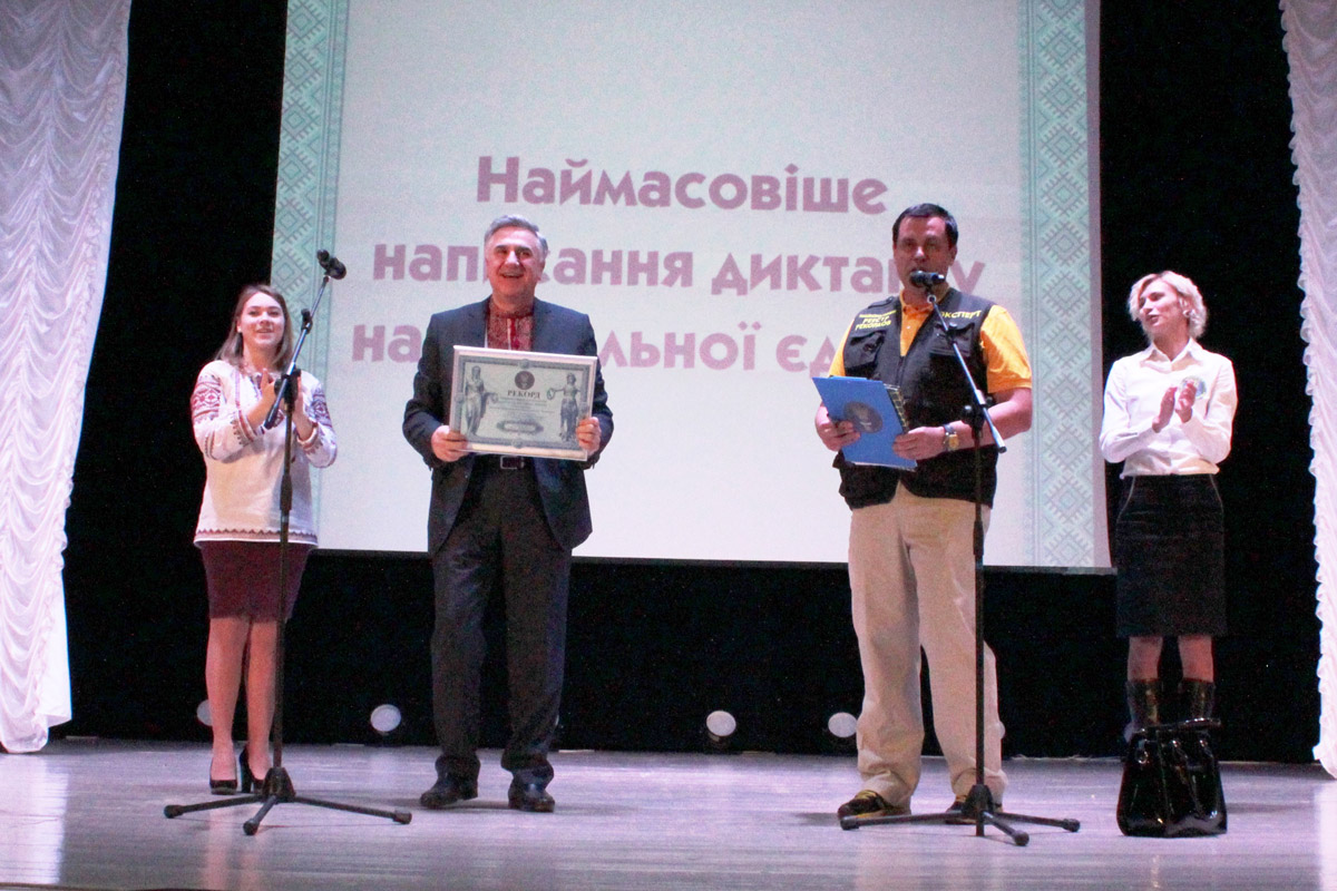 Традиционно его по радио начитывал автор школьных учебников по украинскому языку и литературе доцент Александр Авраменко. Но на этот раз, кроме несколькотысячной аудитории радиослушателей, к написанию присоединились и 689 студентов и преподавателей Киевского университета имени Бориса Гринченка. Они, в основном в вышиванках и с национальной символикой, разместились в университетском зале и на балконе.