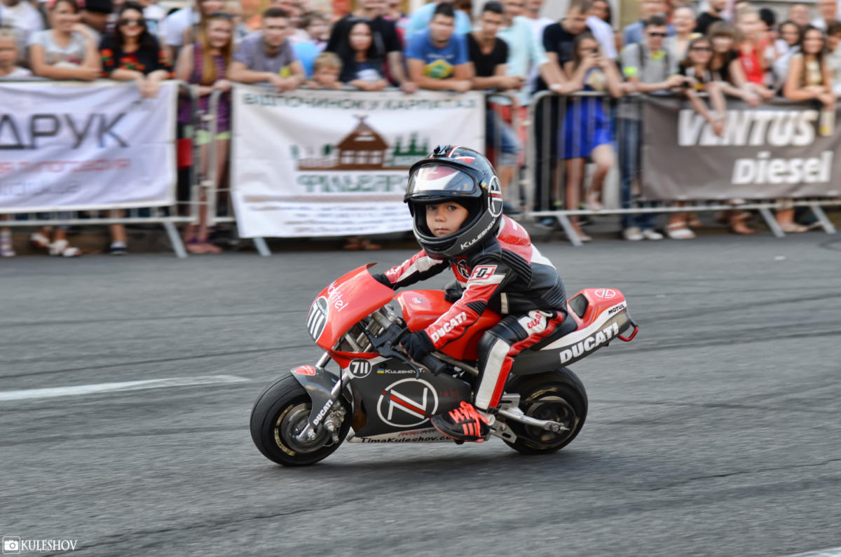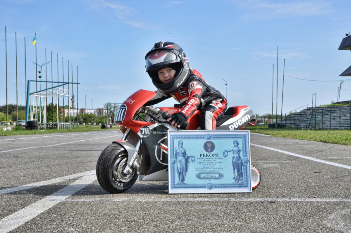 Родители решились на эксперимент — купили сыну мини-мотоцикл, которым Тимур Кулешов овладел так же быстро, как и велосипедом. Во время установления рекорда юный байкер, которому исполнилось 2 года и 5 месяцев, умело проехал «змейку» между искусственными препятствиями, за что и получил титул самого молодого в Украине мотоциклиста.