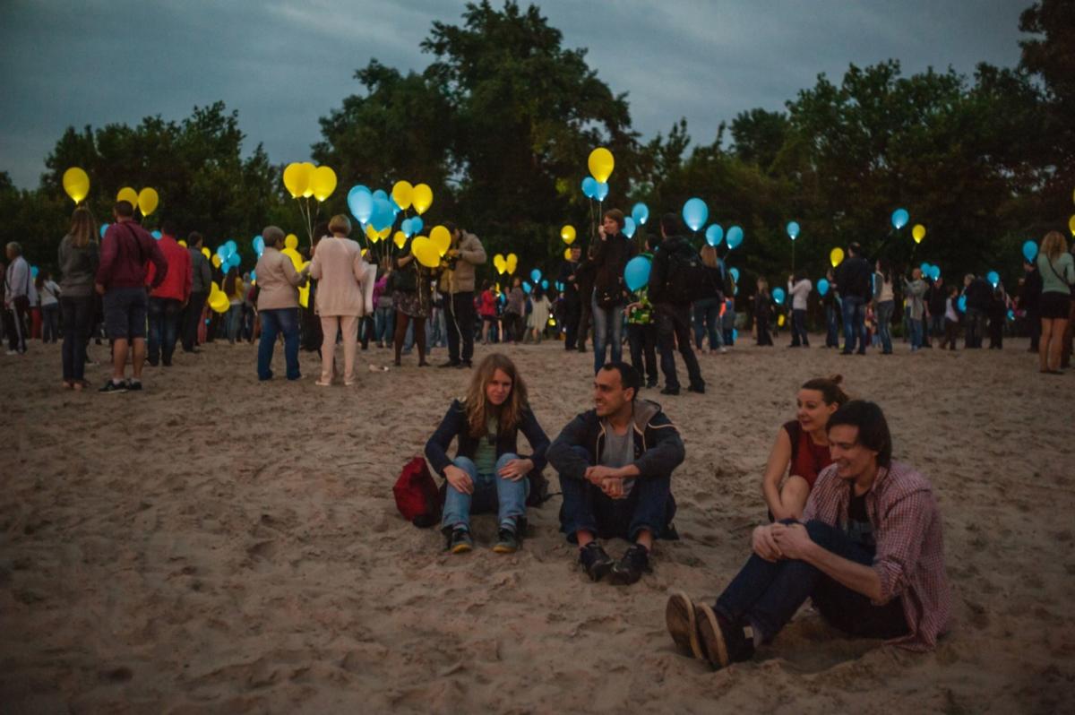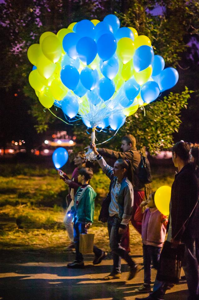 В последний весенний вечер в Киеве на Трухановом острове происходили чудеса. В темноте вдруг начали мелькать желтые и синие ночные светлячки. Их становилось все больше, они собирались вместе, освещая таинственным светом улыбающиеся лица сотен людей.