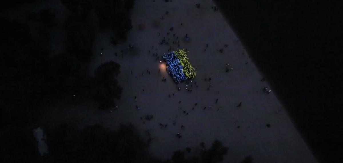 Так на берегу Днепра был создана украинский флаг из 1688 воздушных шариков с вмонтированными световыми элементами — наглядное доказательство того, что рекордное достижение может быть впечатляющим, таинственным и романтичным одновременно.