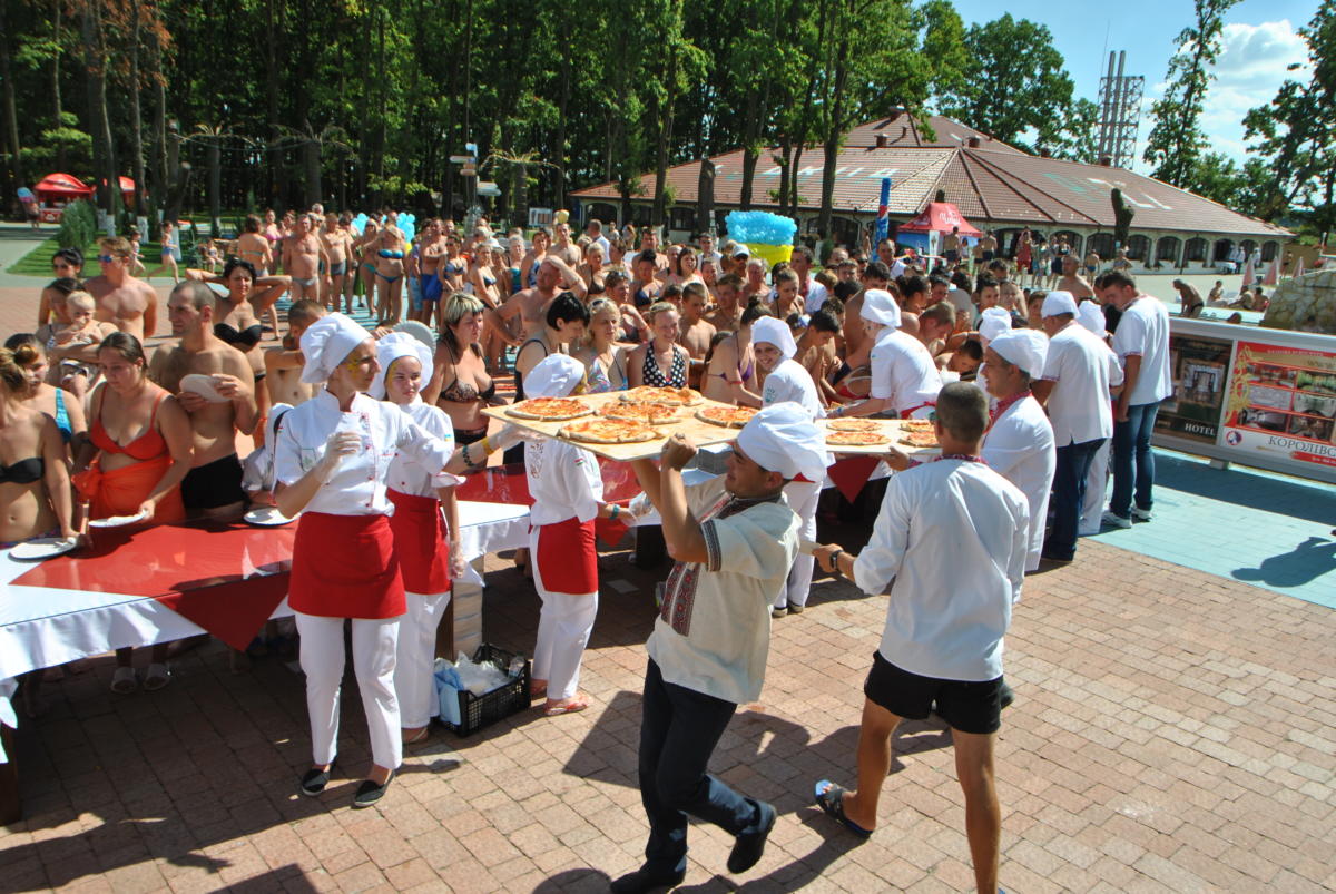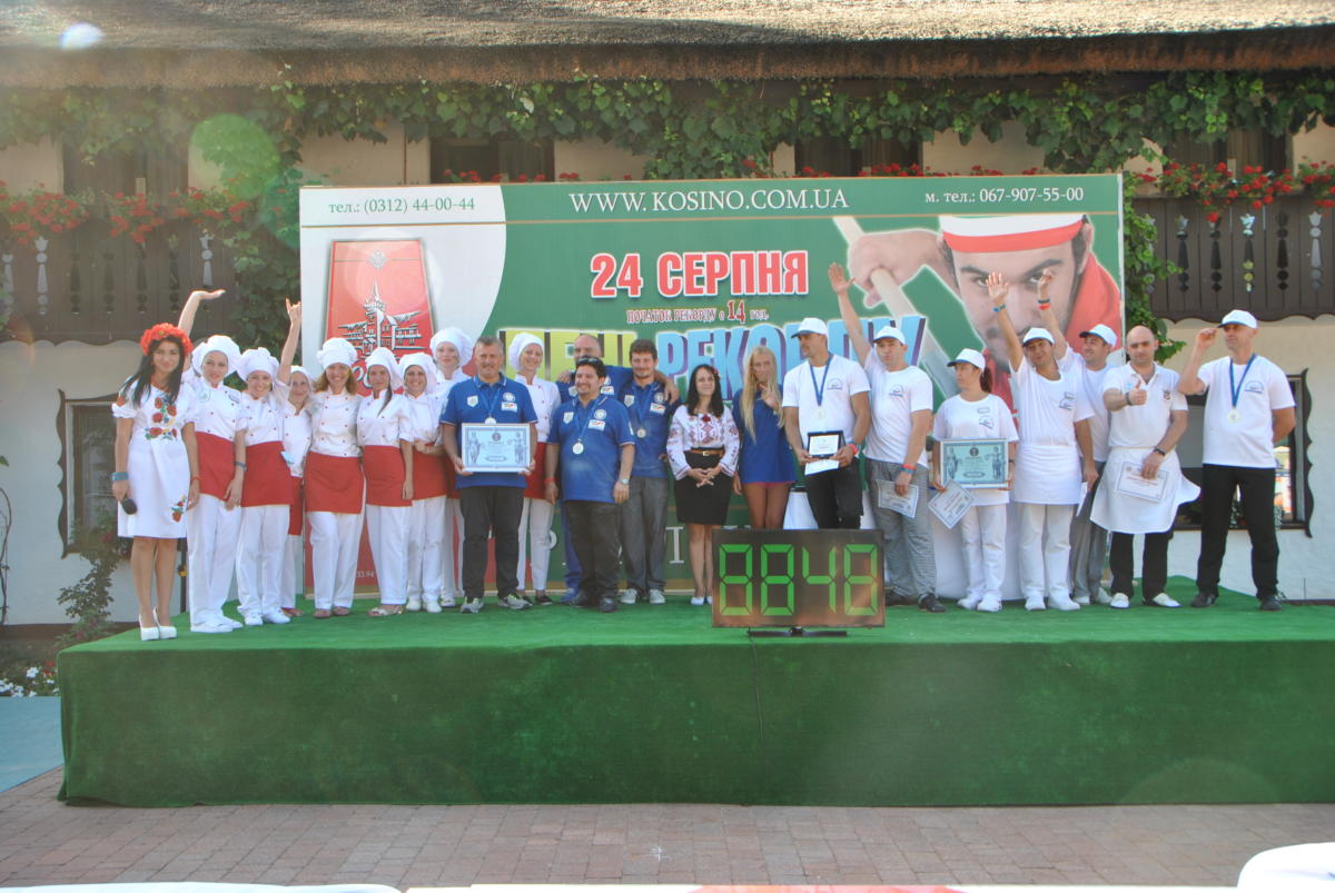 «Термальные воды Косино» не новички в установлении всеукраинских рекордов. И игроков они себе выбрали по рангу — итальянскую школу пиццы Nazionale Italiana Pizzaioli, ведущую европейскую команду, на счету которой не один рекорд Гиннесса. Совместными усилиями итальянские и украинские пиццайоло выпекали в одной печи по 8848 секунд (чуть меньше, чем за два с половиной часа) 667 пицц «Маргарита». Получилось 13,26 секунды на одну пиццу.