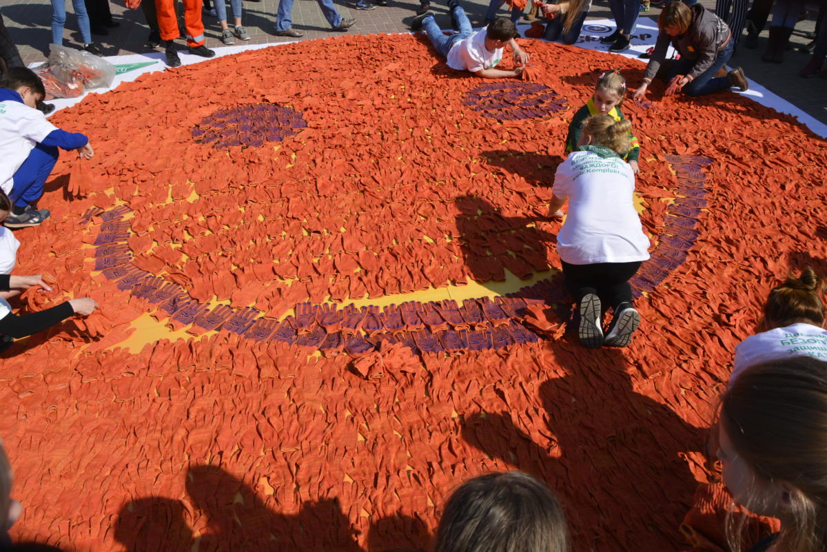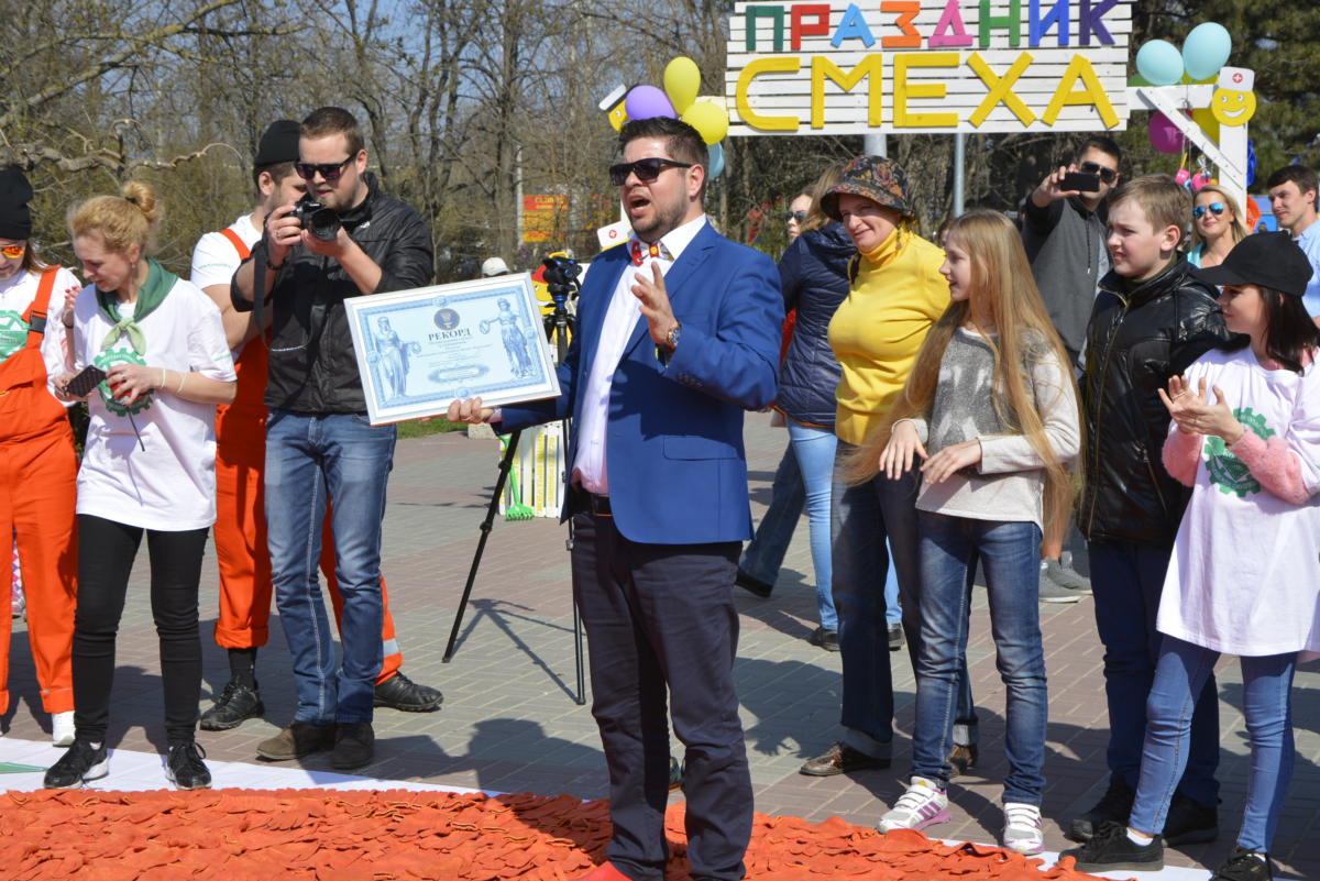 На этот раз участники традиционной «Юморины» выложили из ярко-оранжевых рабочих перчаток смайл площадью около 40 кв. м.