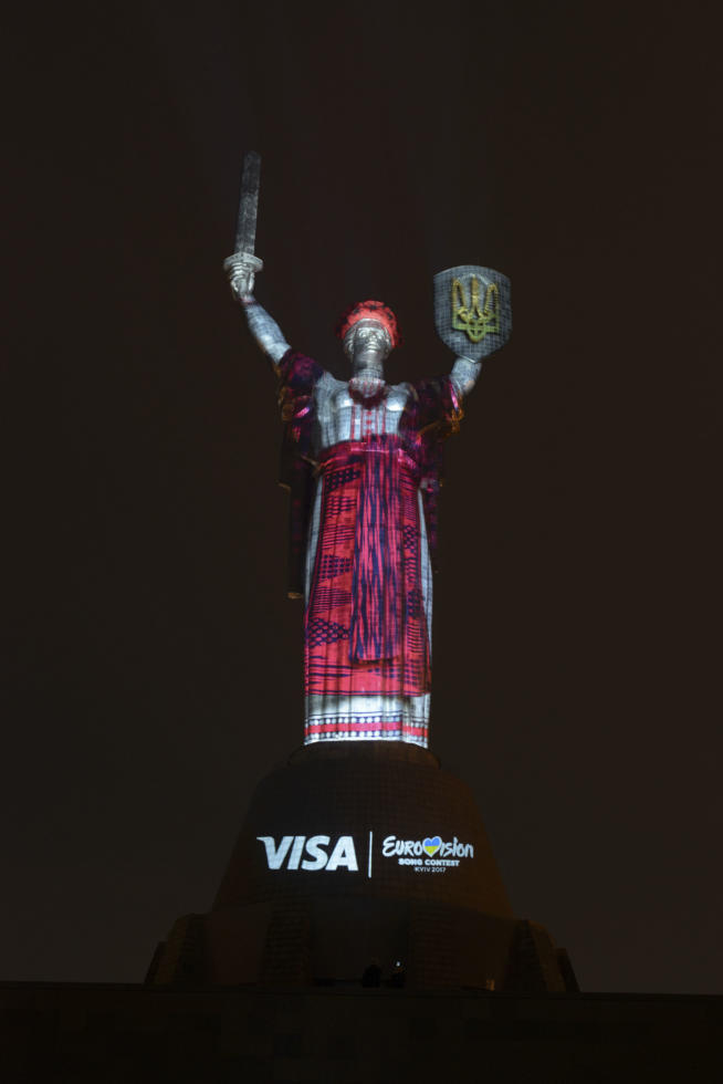 В честь проведения песенного конкурса «Евровидение» его официальный партнер компания Visa «декомунизувала» монумент «Родина-мать» в Киеве. В темное время суток скульптуру подсветили цветами украинского флага и 3D-проекцией украинских национальных костюмов из разных регионов, а также с помощью подсветки заменили герб СССР на украинский Тризуб.
