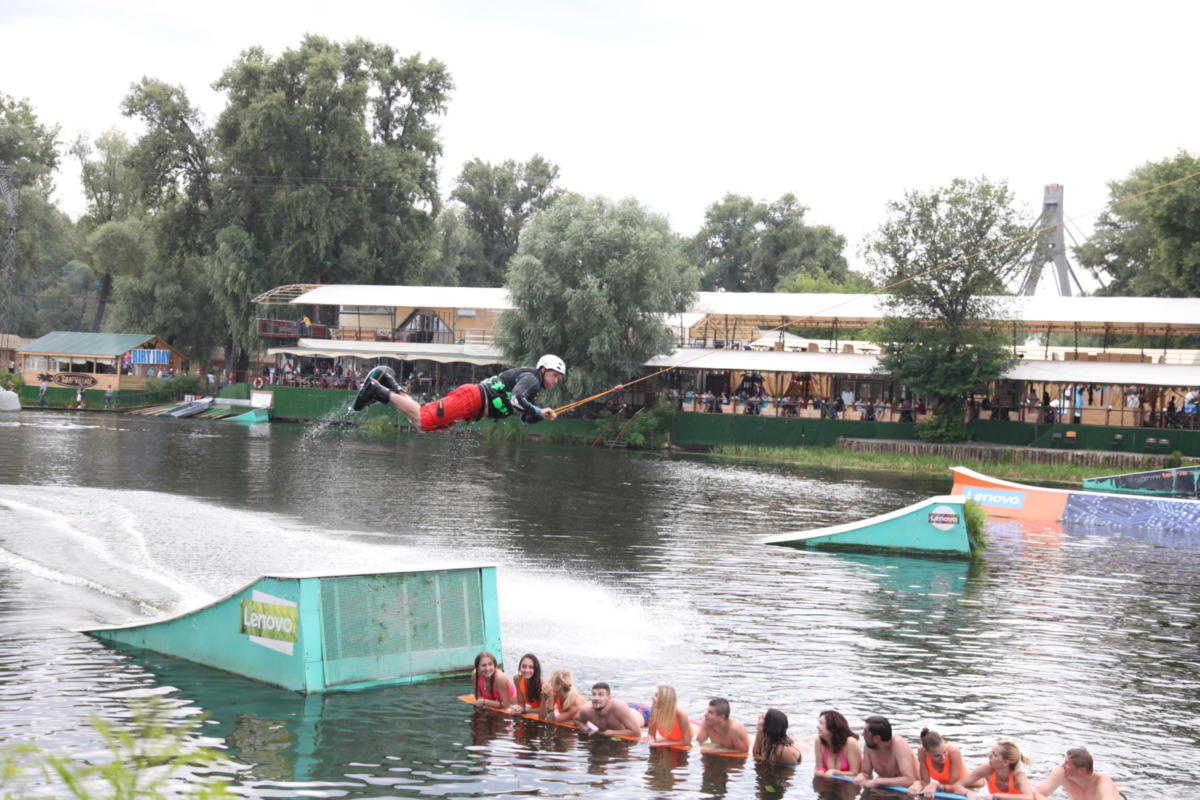 И хотя на вейкборде, прикрепленном к канатно-буксировочной установке, с 1-метрового кикера (трамплина) прыгал известный экстремал, основатель крупнейшего в Украине экстрим-парка киевлянин Юрий Зозуля, если бы что-то пошло не так, последнему добровольцу, на чьей голове приводнился бы спортсмен, пришлось не сладко, даже несмотря на то, что он был в шлеме.